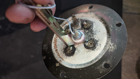 Start by disassembling your stock fuel sending Unit. You will only need the plate where the wires are connected and the harness attached. Cut the individual wires attached to the plate and save both for later.