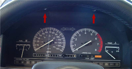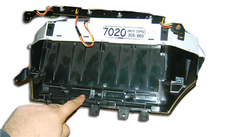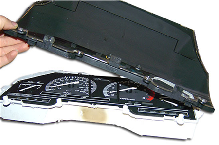- Start by taking out the Gauge Face Lighting bar found on top of the Instrument Cluster. There are a total of 3 small Phillips head screws on the main lighting bar and 2 auxiliary bulbs for the temp and fuel gauges.