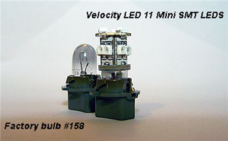 - This is a side by side comparison of the 11 Mini SMT LED bulbs from Velocity LED's and the factory #158 bulb. These are the tallest bulbs you can fit in the stock location.