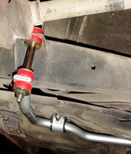 One final note regarding installation of both bars. It is often difficult to get the end link bushings compressed adequately enough to start the nut on the end link. I have found that a floor jack, placed under the sway bar, just before the end link, does an exceptional job of moving and holding things in place while you start the nut. As always, be careful when working under the vehicle.