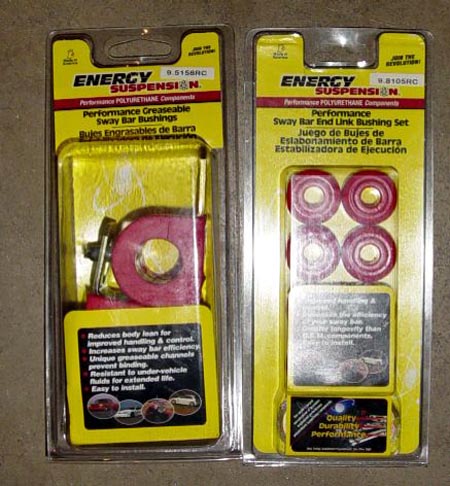 - After refinishing the bars, I purchased polyurethane bushings for both the front and rear bars as well as new end link hardware. The sway bar bushings are Energy Suspension's 22 mm bushings, part number 9.5158RC . The end link bushings are Energy Suspension's part number 9.8105RC. I spent about $28.00 for all the bushings; very nice quality.