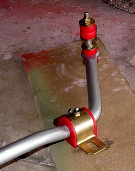 - This is the rear sway bar as installed. Notice the much more substantial endlinks. Other than replacement of the end link bushings and hardware, no other modification was required to upgrade