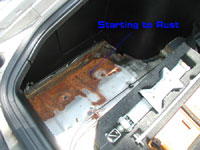 - Rust is most often found in the back of the car at the bottom of the spare tire well, and on the left just above the muffler. If there is rust, take corrective actions as soon as possible before it rusts through. Sometimes it will also show up at the bottom of the firewall and where the rear cross member mounts. If you see any there walk away.
